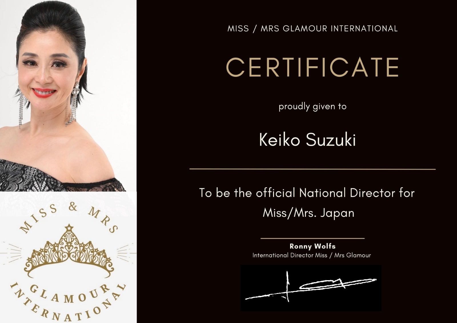 Mrs Glamour International のNational Director に就任いたしました。